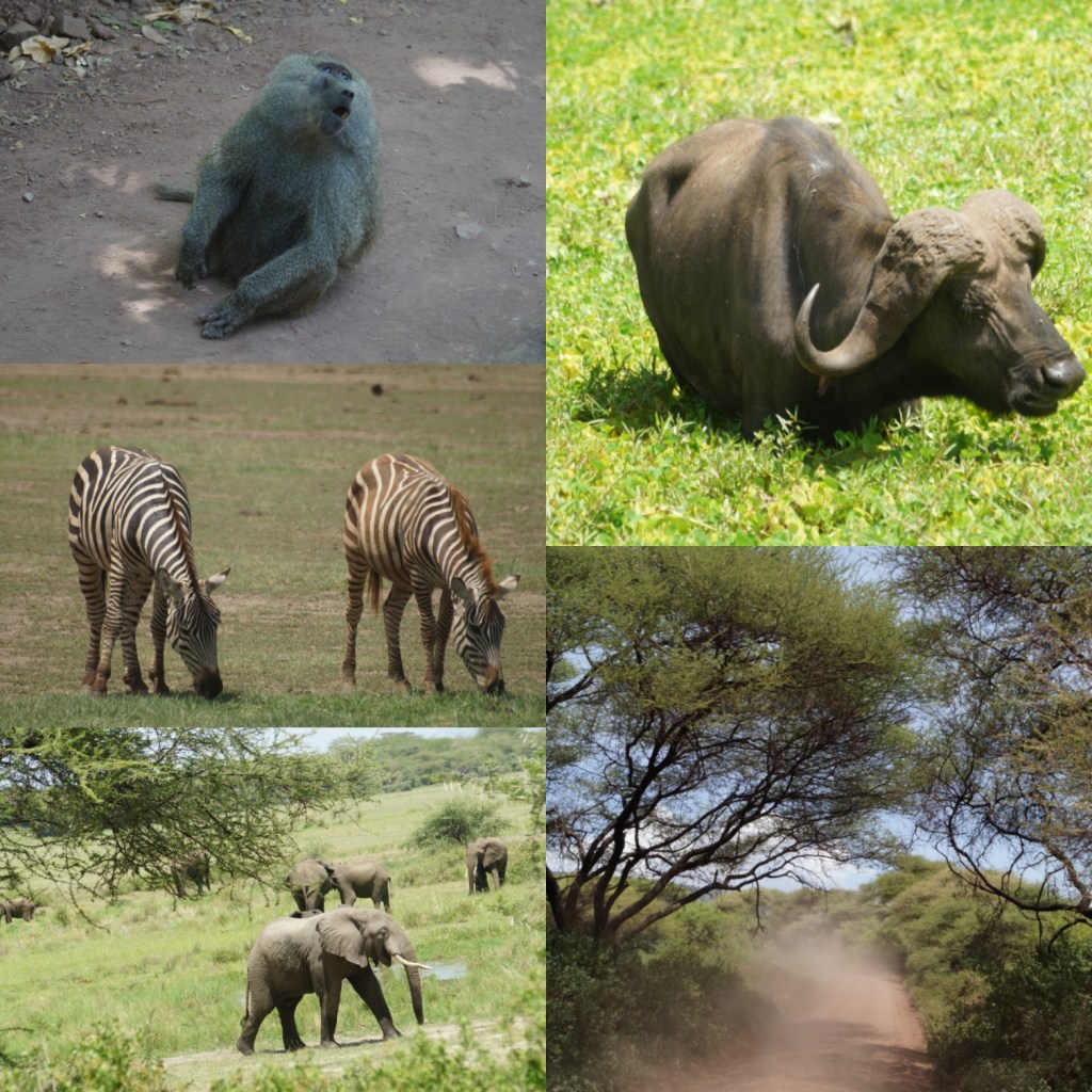 Siamo entrati nel vivo dell’avventura partendo dal Parco Nazionale del Lago Manyara. Gli incontri ravvicinati con gli animali sono cominciati fin da subito. Ricordo ancora l’entusiasmo, già vivo e forte, anche solo per le prime scimmie. Le più atletiche davano spettacolo arrampicandosi sui grandi alberi che ci circondavano, mentre altre se ne stavano pacifiche a grattarsi la schiena l’un l’altra. Era solo l’inizio, ma avevo già capito che c’era un settimo compagno di viaggio, che mi si era appicciato a fianco: la me bambina elettrizzata e piena di stupore. In un attimo ci siamo immersi nella natura e sono comparsi gli gnu, le zebre, le giraffe e gli enormi elefanti. Ci attraversavano pacificamente la strada. Eravamo ospiti in uno spettacolo immenso. Poi la prima grande sorpresa: una leonessa, maestosa e rilassata, stesa in disparte sotto l’ombra di un grande albero. Abbastanza rara da vedere in quel parco. La natura e i suoi doni.