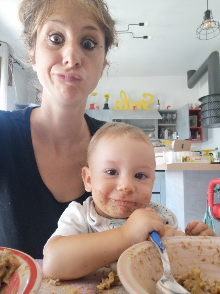 E poi, questo cos’è? Il gusto! Che bello cominciare i primi assaggi e che fame fin da subito. Sporcarsi tutti e toccare ogni pietanza con mano è la parola d’ordine. Il risultato? Un piccolo e adorabile porcile che mamma ripulisce con tanto amore, risate e pazienza e che i suoi cani adorano lucidare.